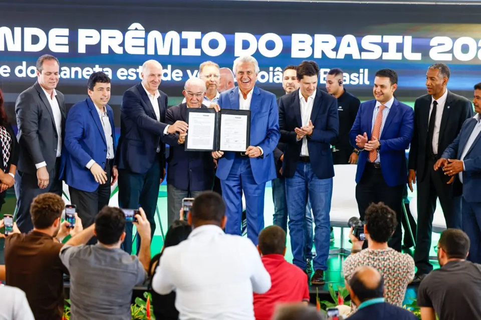 A MotoGP oficializou, nesta quinta-feira (12), o retorno da categoria ao Brasil. A direção do campeonato assinou contrato de cinco anos com o governo do Estado de Goiás para receber a etapa a partir de 2026. A corrida será disputada no Autódromo Internacional Ayrton Senna, em Goiânia, no mês de março, ainda sem data confirmada. A expectativa é de que o circuito receba até 100 mil torcedores no dia da prova principal. O governo projeta um impacto econômico de até R$ 1 bilhão, além de gerar arrecadação de impostos na casa dos R$ 200 milhões para o Estado, Goiânia e as cidades vizinhas. O contrato foi assinado nesta quinta com a presença do governador Ronaldo Caiado e do espanhol Carmelo Ezpeleta, CEO da Dorna, empresa que detém os direitos da competição. O GP brasileiro será realizado pela Brasil Motorsports, promotora também do GP de São Paulo de Fórmula 1. Será a segunda vez que a MotoGP terá uma etapa na capital goiana A primeira aconteceu na década de 80, entre 1987 e 1989. “É um momento especial. A MotoGP está voltando para casa, foi onde tudo começou no Brasil há 37 anos. É um momento de muita felicidade. Sabemos da importância econômica deste evento, projetando a imagem de Goiás para o mundo inteiro”, afirmou Alan Adler, CEO da Brasil Motorsports. O acerto foi celebrado pelo governo goiano. “Será o maior evento já ocorrido em toda a história do Estado de Goiás. Não se compara com o que tivemos aqui entre 87 e 89. Na época não tinha esse glamour todo. É algo do porte de uma corrida da Fórmula 1. Goiânia precisa se preparar, um ano e quatro meses para podermos receber bem esses convidados que virão do mundo todo”, declarou o secretário-geral de governo, Adriano da Rocha Lima. A MotoGP entrou em negociação com cidades brasileiras nos últimos anos. Rio de Janeiro, com o autódromo que chegou a ser planejado a ser erguido em Deodoro, e Brasília, chegaram a iniciar conversas, sem sucesso. Goiânia contou com a vantagem do seu circuito, com características mais adaptáveis à motovelocidade, principalmente na questão de segurança. As áreas de escape maiores foram um dos diferenciais. A negociação entre o Estado de Goiás e a cúpula da Dorna começou em julho deste ano. E contou com viagens de secretários de governo a etapas da MotoGP, na Europa, ao longo deste ano. A última versão do contrato foi definida na madrugada desta quinta, de acordo com as partes envolvidas. “Desde o começo essa negociação foi muito importante para nós. Estamos comprometidos em fazer algo muito especial para Goiás, para o Brasil e para a América do Sul. Vamos trabalhar duro para fazer deste evento o melhor do mundo”, afirmou Carmelo. A Dorna indicou que pretende estender o vínculo com a etapa brasileira futuramente. E afirmou que o GP deve ser o mais veloz do calendário da competição. “Corremos aqui por três anos, na década de 80, todas etapas vencidas por lendas da MotoGP. Acredito que será incrível de novo. Provavelmente será o GP mais veloz de todo o calendário. Muitas curvas poderão ser vistas de diferentes pontos das arquibancadas. Será um incrível evento dentro e fora da pista. Estamos emocionados de estar aqui de novo. Queremos que essa parceria vá além de cinco anos”, disse Carlos Ezpeleta, diretor da Dorna. ReformaO autódromo, considerado o mais adequado para receber provas de motovelocidade no Brasil, será fechado em janeiro para uma reforma que durará seis meses para ajustes gerais, dentro e fora da pista. De acordo com o governo estadual, as alterações vão alcançar as áreas de escape, o guardrail e o asfalto, que será renovado. A previsão é de um custo de R$ 50 milhões. Haverá, no entanto, mais mudanças após o meio do ano, mas o circuito não precisará permanecer fechado. “Dada as características do autódromo de Goiânia, as intervenções serão mínimas para garantir a segurança, mas faremos melhorias em outras áreas que podem durar mais tempo, mas não impedem a realização de outros eventos no autódromo”, explicou o secretário-geral do governo. “A reforma já está planejada, seguindo as orientações da Dorna e da Brasil Motorsports. O investimento vai chegar a R$ 50 milhões num contexto global da recuperação da pista, asfaltamento, área de boxes, estrutura de arquibancadas”, comentou o governador goiano. A MotoGP não conta com uma etapa no Brasil desde 2004, ano de sua última corrida em solo nacional. A categoria foi disputada no agora extinto Autódromo de Jacarepaguá, no Rio de Janeiro, entre 1995 e 2004. O Autódromo de Interlagos, em São Paulo, recebeu uma edição, em 1992. Antes disso, a principal competição de motovelocidade do mundo foi disputada justamente em Goiânia, no agora chamado Autódromo Internacional Ayrton Senna, entre os anos de 1987 e 1989. O último brasileiro a figurar no grid da MotoGP foi Alexandre Barros, que esteve na última prova brasileira, há 20 anos.